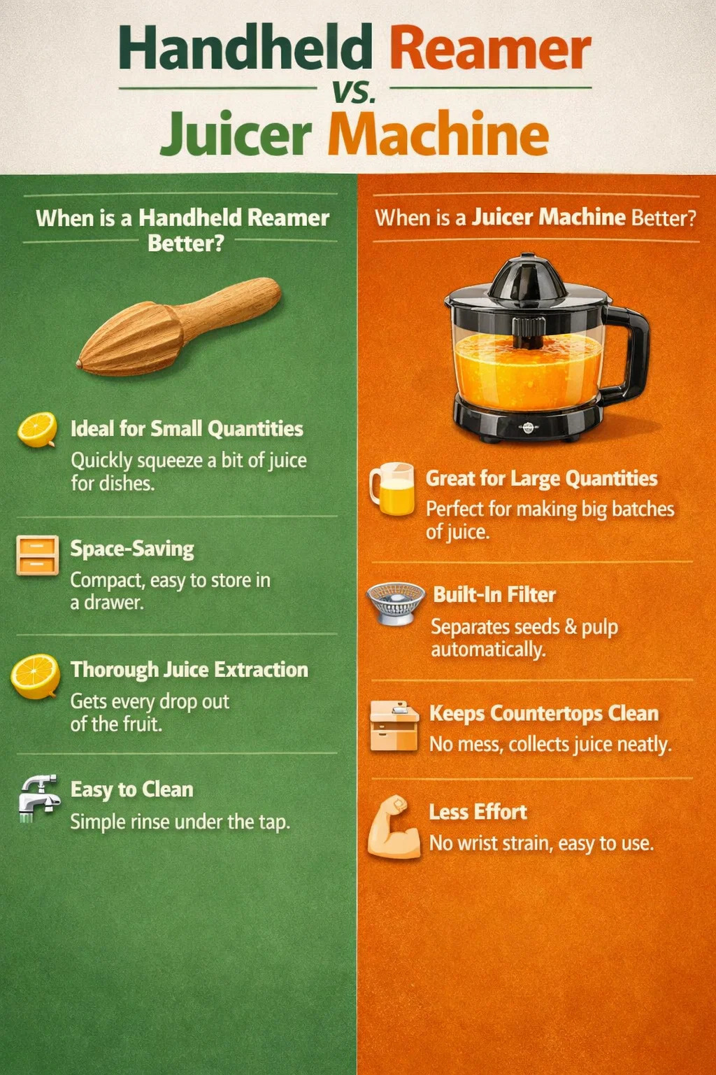 Is het in de keuken kosteneffectiever om een handruimer te gebruiken of een sapcentrifuge met kom of motor? Dit is in wezen een afweging tussen ‘inspanning’ en ‘efficiëntie’.