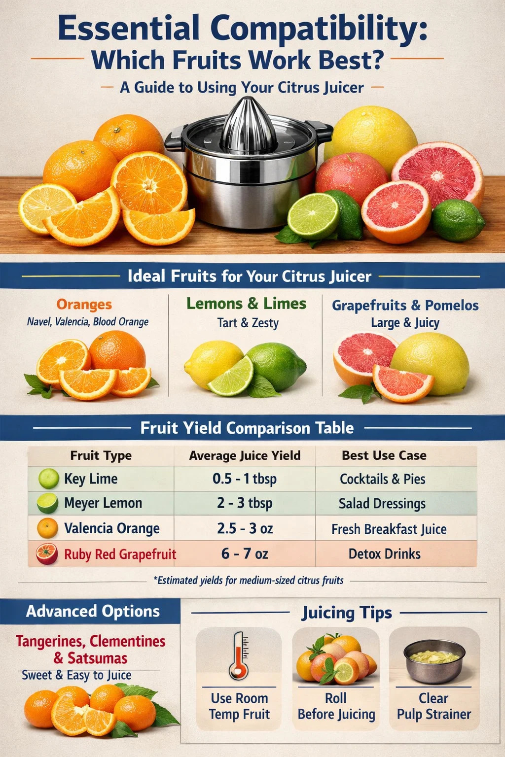 Het meest voorkomende gebruik voor a citruspers betreft standaard ontbijtfruit. De veelzijdigheid binnen deze categorie is echter breder dan velen beseffen. Elke vrucht biedt een andere opbrengst en zuurgraad, waardoor kleine aanpassingen nodig zijn in de manier waarop u met de machine omgaat.
